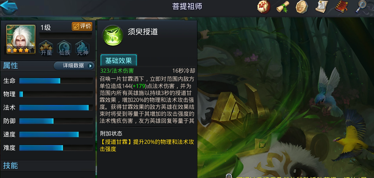 其一技能狮子吼不仅能造成范围法术伤害,关键是可以降低敌人20%的物理强度、法术强度和移动速度,直接压制敌方法师的火力。二技能一刀两断在拖刀移动过程中持续提升速度和最终伤害,并能击飞路径上的敌人,集追击、控制与爆发于一体。大招大口吞天在造成高额物理伤害的同时,能吸收50%的伤害量转化为自身生命回复,这让他在对拼和团战中拥有极强的持续作战和残血反杀能力。达到四星和五星后获得的种族被动妖之障和真·妖之障,能显著提升对仙族英雄的伤害并大幅降低所受法术伤害,进一步巩固了其法师杀手的地位。